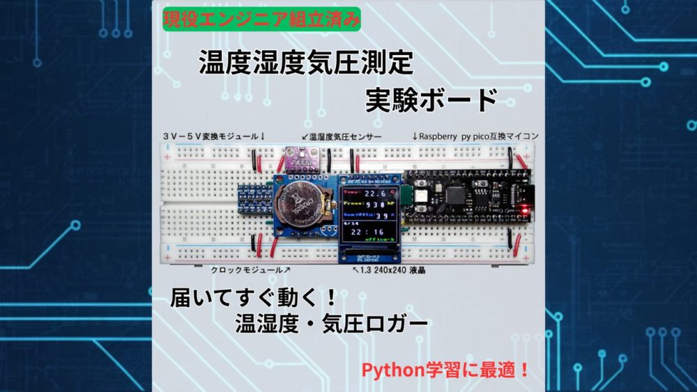 モジュールをいくつか組み合わせて、温度、湿度、気圧、時刻を表示する実験ボードを作ります。1.3インチ240x240の高解像のTFTも入手しましたので、そちらに表示していきます。配線は、モジュール下で行って、小綺麗にします。マイコンは、Rap...